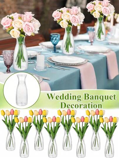 4pcs Plastic Striped Vase Small Transparent Container For Flowers, Highly Shatterproof, Can Be Used For Wedding, Party, Home Table Decoration, Formal Dinner Table Decoration, Windowsill Decoration Flower Arrangement Container