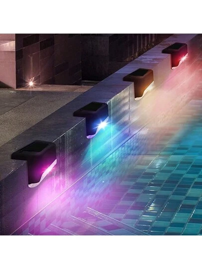 4pcs Solar Powered Stair Lights, Waterproof Plastic Outdoor Fence Lights For Stairs, Steps, Railings, Patio, Driveway, Garden, Pathway And Yard, LED Solar Wall Lights - Multicolor - View 1