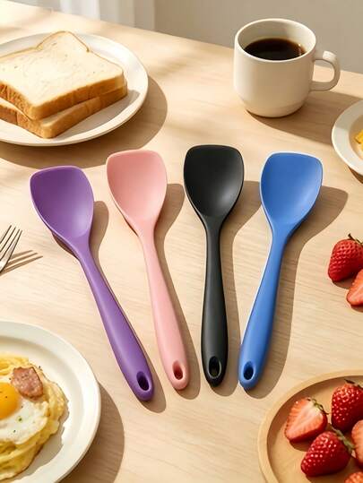 4pcs Silicone Duck Mouth Spoon Set, Multi-Functional Silicone Scraper Tools, Heat-Resistant Kitchen Cooking Spoons, Full-Cover Flat Head Salad Spoons, Mixing Tools Salad Spoons Baking Tools, Suitable For Cooking, Baking And More