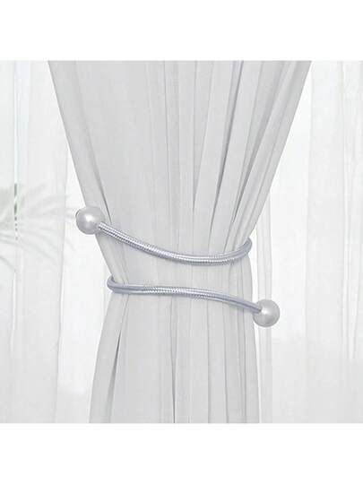 4pcs Window Curtain Tie Backs, Pearl Decor Rope Fixation Brackets Suitable For Small, Thin Or Sheer Curtains - Grey - View 1