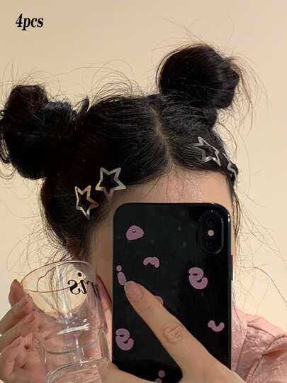 4pcs Women's Y2k Fashion Star Design Hair Clips For Daily Wear Street - Silver - View 1