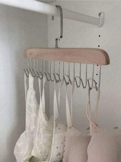 5/10pcsSolid Wood Clothes Rack Underwear Vest Wooden Storage Rack Tie Hanging Multi-Function Hook Clothing Store Clothes Rack Wholesale - Solid Color - View 1