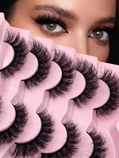 5 Pairs Handmade 3D Natural Looking False Eyelashes, Cat Eye Effect, Short Reusable Soft Lightweight Fluffy Strip Eyelashes - Black - View 1