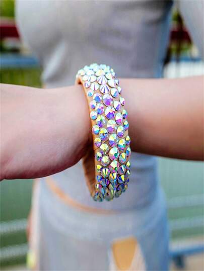 5-Row/6-Row Crystal AB Rhinestone Belly Dance Bracelet Latin Dance Jewelry - Five rows of AB color rhinestone bracelets - View 2