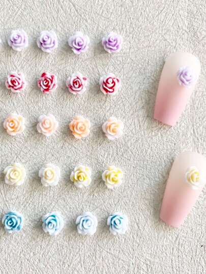 50pcs Random Color 3D Flower Design Nail Art Decoration - Multicolor - View 3