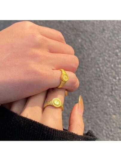 520 Small Gold Watch Clock Ring For Women, Open Adjustable Index Finger Ring, 1pc - Yellow Gold - View 1