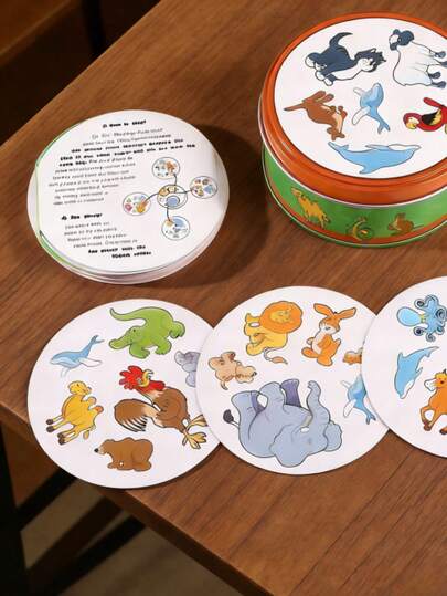 55pcs Dolphin Animal Matching Card Game - Visual Reaction Game Cards - Quick Pairing Card Game For Family And Friends - Tin Box For Gathering - Multiplayer Fun, Dinosaur Theme Party Decor, Dinosaur Theme Box, Card Game, Couples Game - Green - View 7