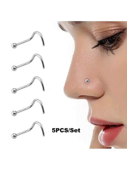 5PCS/Set 316 Stainless Steel Nose Piercing Nose Ring Simple Style Ala Nasi Piercing Body Piercing Jewelry - Silver - View 1