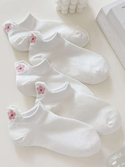 5pairs Floral Embroidered Ankle Socks - Multicolor - View 1