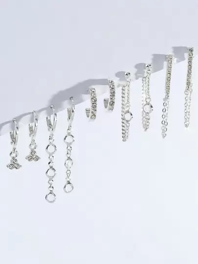 5pairs Rhinestone Decor Earrings - Silver - View 1