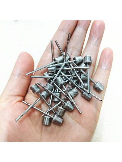 5pcs Basketball & Football Inflating Needle, Metal Air Pump Nozzle Accessories Including US-Style Air Valve Connector - Silver - View 10