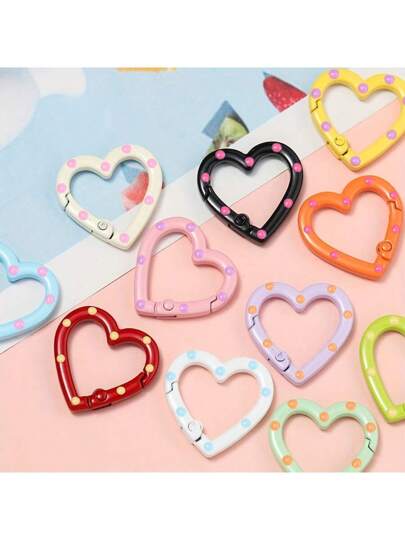 5pcs Colorful Oil Drop Round, Oval, Heart Shaped Key Rings Zinc Alloy Spring Keychain, DIY Jewelry & Keychain Making Supplies - Random Color Mix 5 - View 11