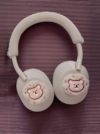 5pcs Cute Cartoon Bear Earmuff Style Protective Cover Replacement Sleeve For XM5/WH Bluetooth Headphones - Champagne - View 1