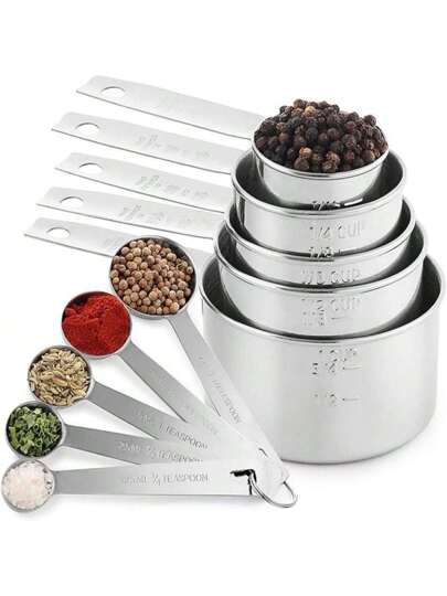 5pcs Measuring Cups + 5pcs Measuring Spoons, Stackable Stainless Steel Measuring Cups And Spoons For Dry Goods Or Liquids, Kitchen Tools For Cooking And Baking, Baking Supplies - Silver - View 1