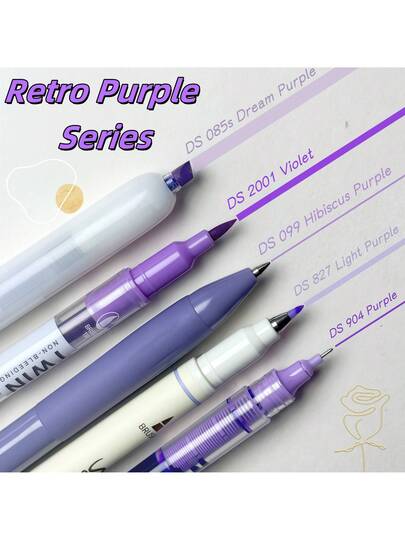5pcs Retro Green Neutral Pens, Includes 5 Different Models, Suitable For Drawing, Writing, Engineering Drafting, Doodling, Office And School Supplies - 5 Retro Purple - View 8