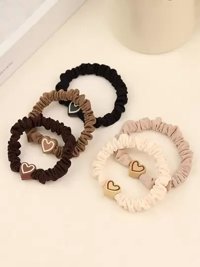 5pcs/set Heart Shaped Icy Silk Scrunchies - Multicolor - View 1