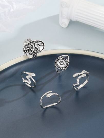 5pcs/set Women's Snake Ring Set For Women For Daily Decoration - Silver - View 1