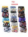 10pcs/Pack Boys' Comfortable Smiling Face, Basketball, Football Print Boxer Briefs, Fashionable Cartoon Print Underwear