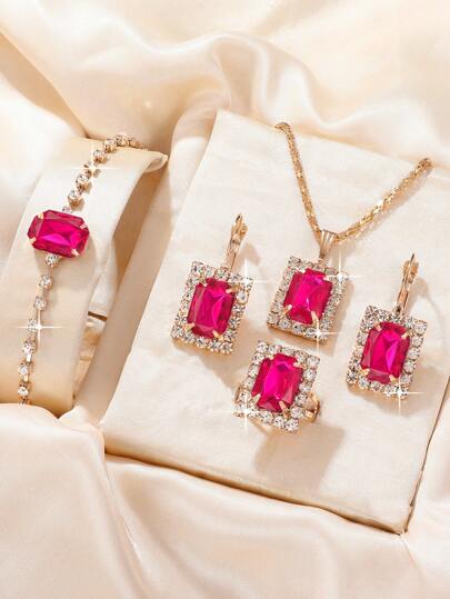 5pcs/set Cubic Zirconia Decor Jewelry Set - Multicolor - View 1