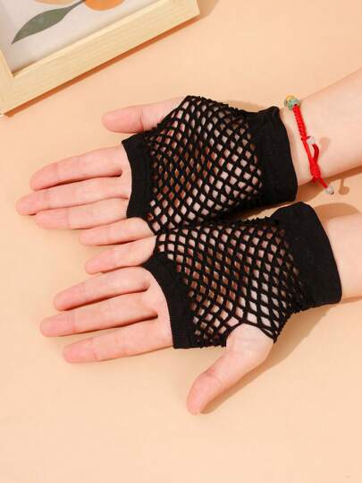 6-16 Years Old Children's European & American Style Hollow Out Mesh Net Gloves - Black - View 1