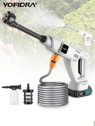 Yofidra 6 IN 1 Car High Pressure Washer Car Wash Water Gun Home Garden Car Cleaning Machine Set,Garden Tools,Essential Tools For DIY Home And Courtyard Renovation - with 1 Battery-UK Plug - View 1