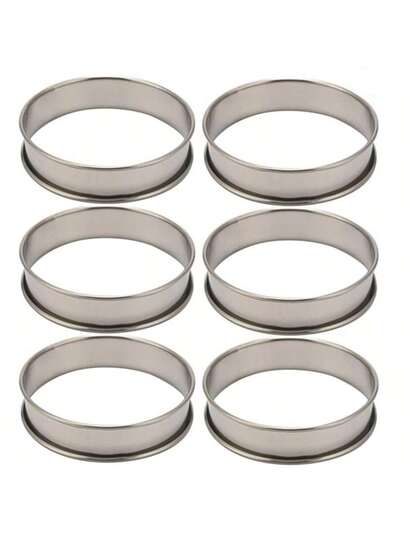 6 Pack 4 Inch Double Rolled English Muffin Rings, Stainless Steel Crumpet Rings, Tart Rings, Round - Silver - View 1