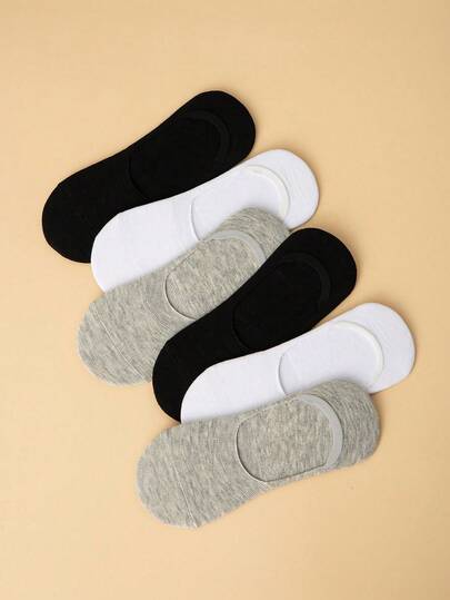 6 Pairs Men's Solid Color Simple Style Non-Slip Comfortable Breathable Boat Socks, No Show Socks, Suitable For Business & Casual Wear - Multicolor - View 1