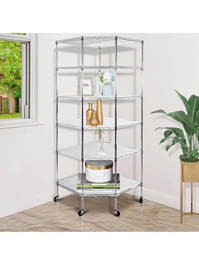 6 Tiers Corner Shelf,Adjustable Metal Storage Wire Shelving Unit Corner Rack Corner Shelving, Free Standing Corner Storage Rack with Wheels for Garage Living Room, Bathroom, Kitchen - White - View 1