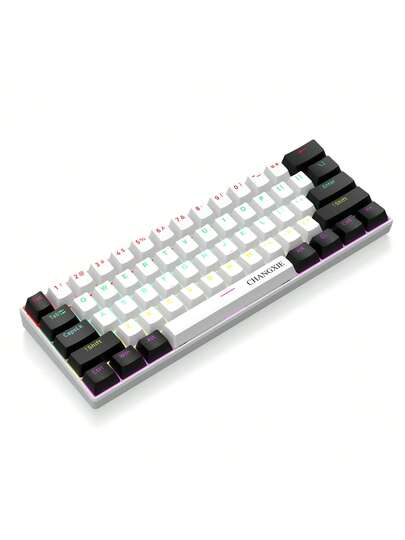 60% Compact Wired Keyboard, Clicky Mechanical Keyboard, 61 Keys, RGB Backlit, Ergonomic Design, Compact & Portable Office/Computer Mechanical Keyboard, Suitable For Windows Tablets, Laptops, Etc. - G61 white black - View 1