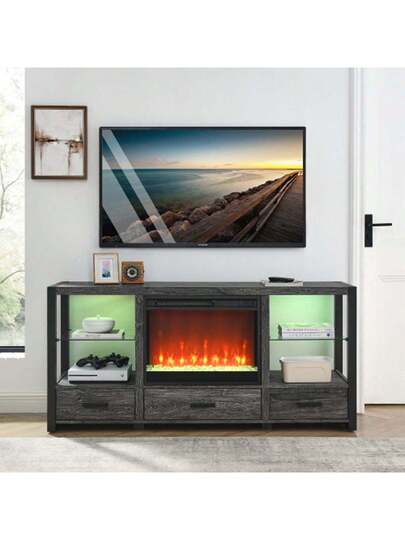 60 Inch Electric Fireplace Media TV Stand With Sync Colorful LED Lights - Dark Oak - View 1