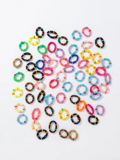 60pcs Color Block Cute Y2K Hair Tie Suitable For Braided Hair, Fixed Hairstyle, Suitable For Women, Suitable For Daily Life - Multicolor - View 1