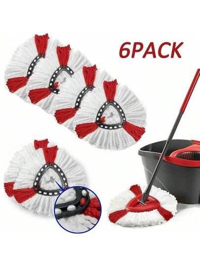 6PCS Mop For Wring Mopping Replacement Clean Microfibre Mop Refill Head - Red and White - View 6