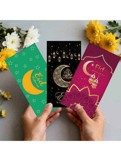 6pcs/18pcs Eid Mubarak Cash Envelopes/Red Packets, Ramadan Moon Decorations, Eid Invitation Cards - Multicolor - View 3