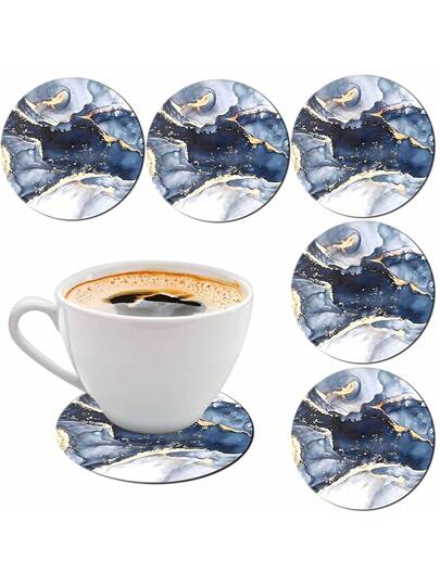 6pcs/Set Navy Blue Marble Ceramic Coasters, Round Ceramic Table Mats, Coffee Cup Drink Coasters, Suitable For Home, Living Room, Study, And Kitchen Decor, Essential For Home, Study, Kitchen, And Coffee Enthusiasts - Multicolor - View 1