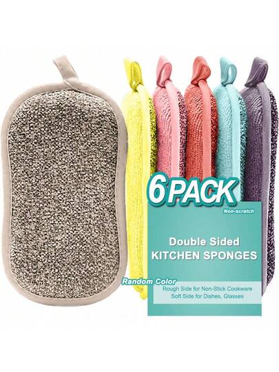6pcs/Set Random Color Multi-Functional Double-Sided Sponge Scrubber - multiple colour - View 1