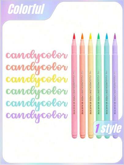 6pcs Soft Brush Highlighter Set, Pink Tone Marker Pen Set, Art Coloring Highlighter, Calligraphy Pen Back To School - Multicolor - View 1