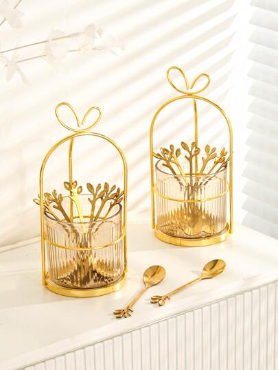 1 Set Christmas Gift Plastic & Stainless Steel Coffee/Dessert Spoons, Flatware Suitable For Wedding, Party, Gift, Birthday, Christmas Gift,School Supplies - Gold - View 1