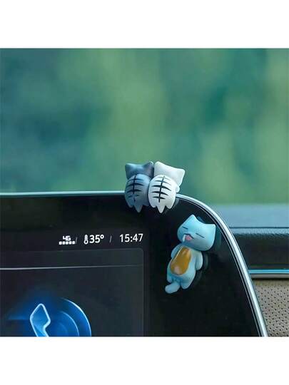 6pcs Super Cute Cartoon Cat Figurine, For Decorating Computer Monitor, Car Interior, Display Screen, Bonsai Or Landscape Decor - Multicolor - View 1