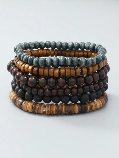 6pcs Wooden Bead Bracelet For Men - 6PCS - View 1