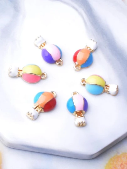 6pcs/set Bohemian Zinc Alloy Color Block Fire Balloon Design DIY Charm For Women For DIY Jewelry Making - 6 pieces of pink + purple - View 1