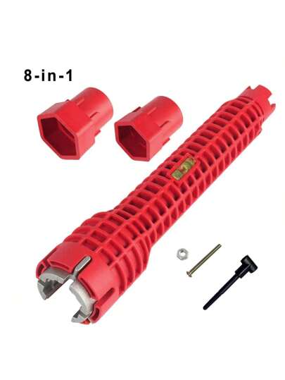 8 In 1 Multifunctional Faucet Wrench (1 Count), Sink Faucet Installer Tool, Basin Wrench For Small Space Toilet Kitchen Bathroom - Red - View 1