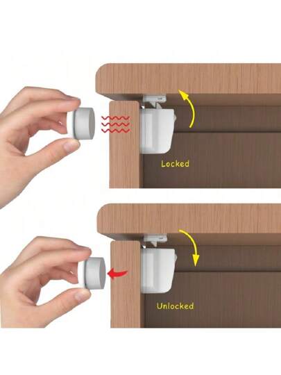 8 Locks + 2 Keys White Strong Adhesive Magnetic Cabinet Locks For Babies, No Tool Required Invisible Child Proofing Kitchen Cupboard Lock - White - View 1