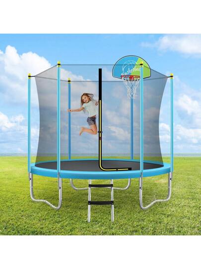 8FT Trampoline For Kids With Safety Enclosure Net, Basketball Hoop And Ladder, Easy Assembly Round Outdoor Recreational Trampoline - Blue - View 1