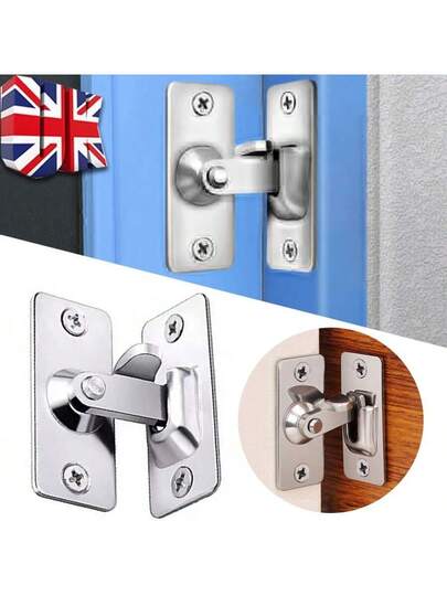 90 Degree Stainless Steel Door Latch - Right Angle Sliding Door Lock Home Security Screw Locker Furniture Hardware Accessories - Silver - View 1