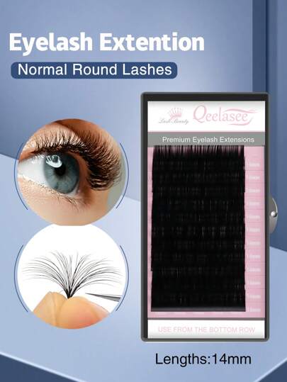 A Box 14mm False Eyelash Extensions professional Mink Individual Lashes supplies  volume fan eyelashes - Black - View 1