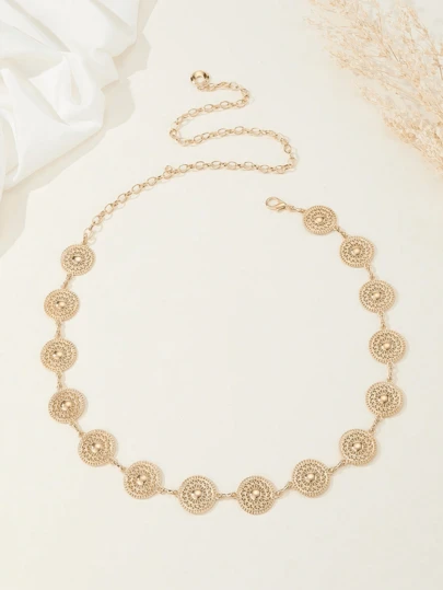 Elegant Floral Print Zinc Alloy Waist Chain Accessory, Fashionable And Slim Waist Belt For Dress, Suit, Skirt, Dress Accessory, Versatile For Daily Commute, Gathering With Friends, Vacation, Evening Party, Gala, Gift For Friends, Mother, Family, Girlfriend, Birthday, Valentine's Day, Mother's Day - Gold - View 1