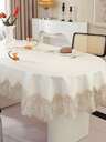 1pc Cream Color Lace Edged Tablecloth, Pastoral Polyester Square Lace Embroidered Hollow-Out Heat Resistant Dust-Proof Tablecloth For Coffee Table, Dining Table, Daily Home Decor And Wedding Party Holiday
