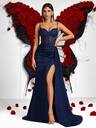 ADYCE Sequin Sweetheart Neck Pliss Waist Split Back Maxi Formal Dress With Long Ties,For Banquets And Parties Prom Formal Dresses,Graduation Dress,Party,New Year