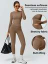 1 Set Women Stretchy Tight Thermal Lined Long Sleeve Top And Pants Activewear Set