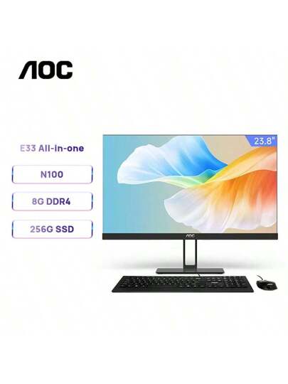 AOC All-In-One PC E33, 23.8" Commercial & Home Office Computer, N100, 8GB DDR4, 256GB SSD, Wi-Fi 5, High Color Gamut IPS Display, Wired Keyboard Set, Windows 11 Pro - UK Plug(220-240V) - View 1